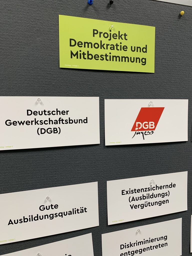 Im Rahmen des Projektes Demokratie und Mitbestimmung boten die Teamer der DGB-Jugend unseren IT-, VT- und Elektro-Auszubildenden eine vierstündige Unterrichtseinheit mit den Schwerpunkten gewerkschaftliche Basisarbeit und Mitbestimmung an.