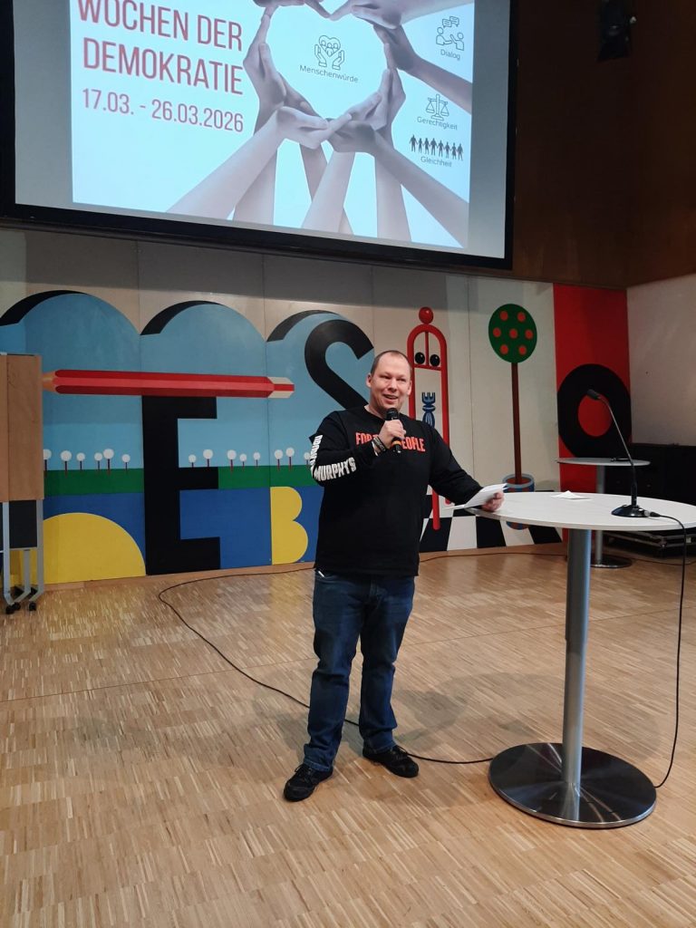 Am Dienstag, den 17. März 2026, eröffnete Schulleiter Andreas Kirschner die Demokratiewochen in einer kurzen Ansprache in der Aula. Unterstützung erhielt er von: