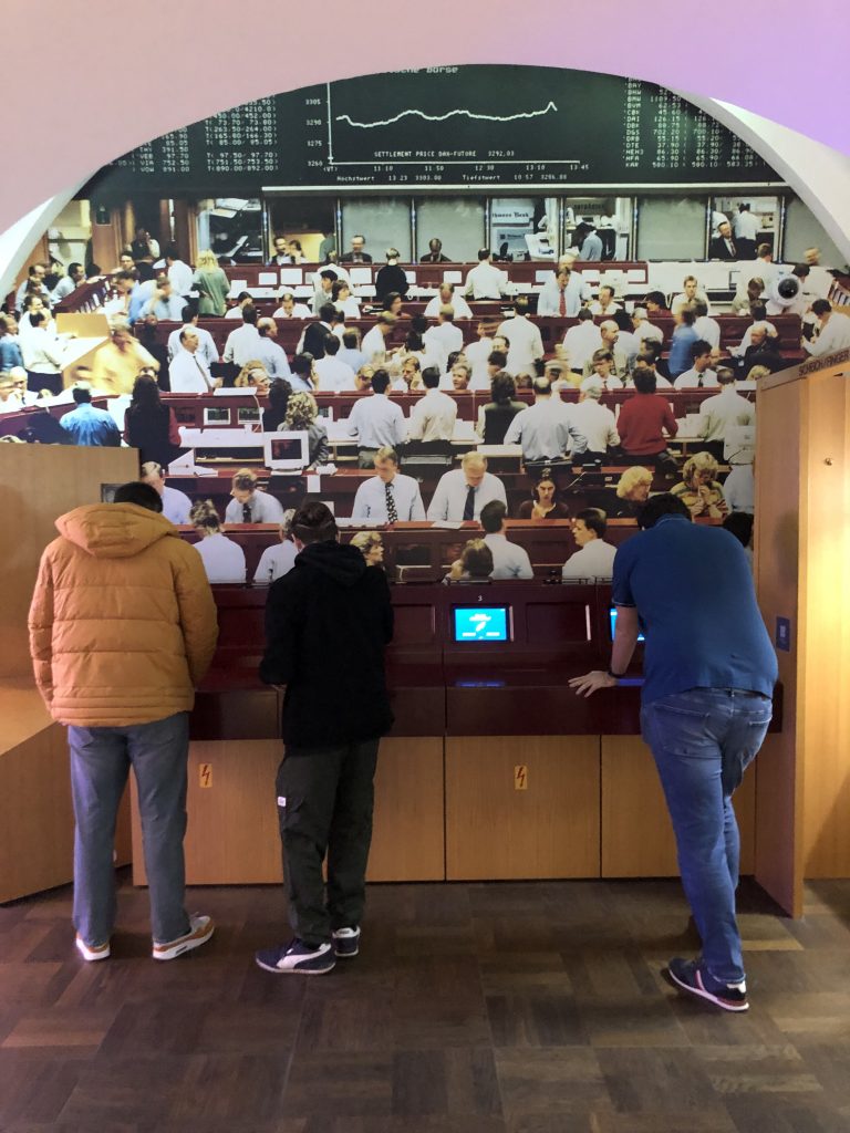 Auch der klassische Parketthandel konnte beobachtet werden. Mittlerweile ist dieser zu großen Teilen vom elektronischen Handel abgelöst worden. Die Deutsche Börse Group versteht sich daher als ein Unternehmen der Informationstechnologie, was den Ausflug für die Auszubildenden zum Fachinformatiker noch interessanter machte.