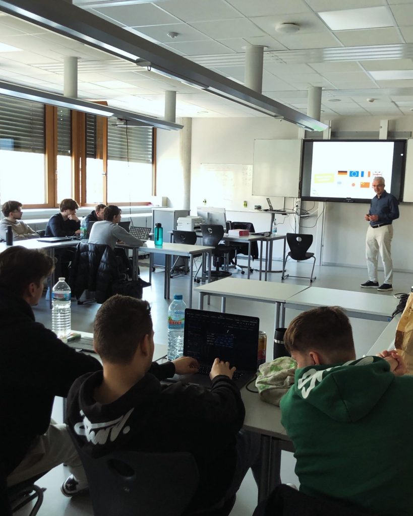 Im Rahmen der Bildungsinitiative „Hoch im Kurs” besuchte Frank Zschau unsere Fachinformatiker-Klassen und vermittelte unseren Azubis des dritten Ausbildungsjahres grundlegendes Finanzwissen zu den Themen Geldmanagement und Kapitalmarkt.