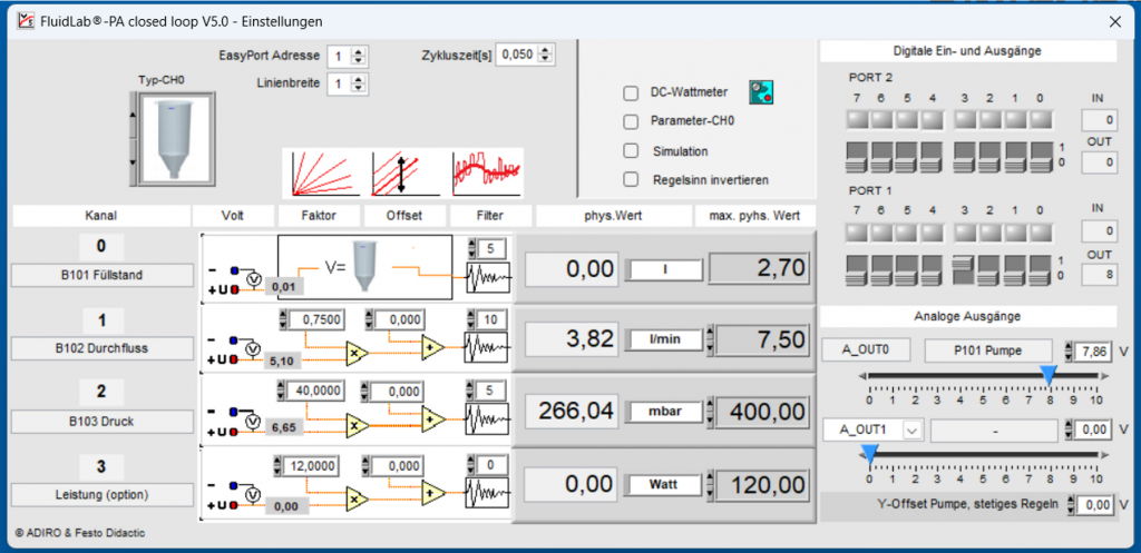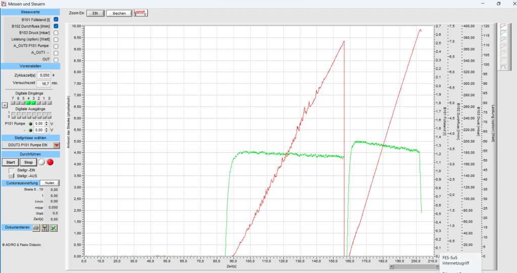Auch nicht praktikable Regelungen, wie eine instabile Druckregelung, wurden in verschiedenen Szenarien bewusst durchgespielt, um mögliche Fehlkonfigurationen im späteren Unterricht anschaulich thematisieren zu können.