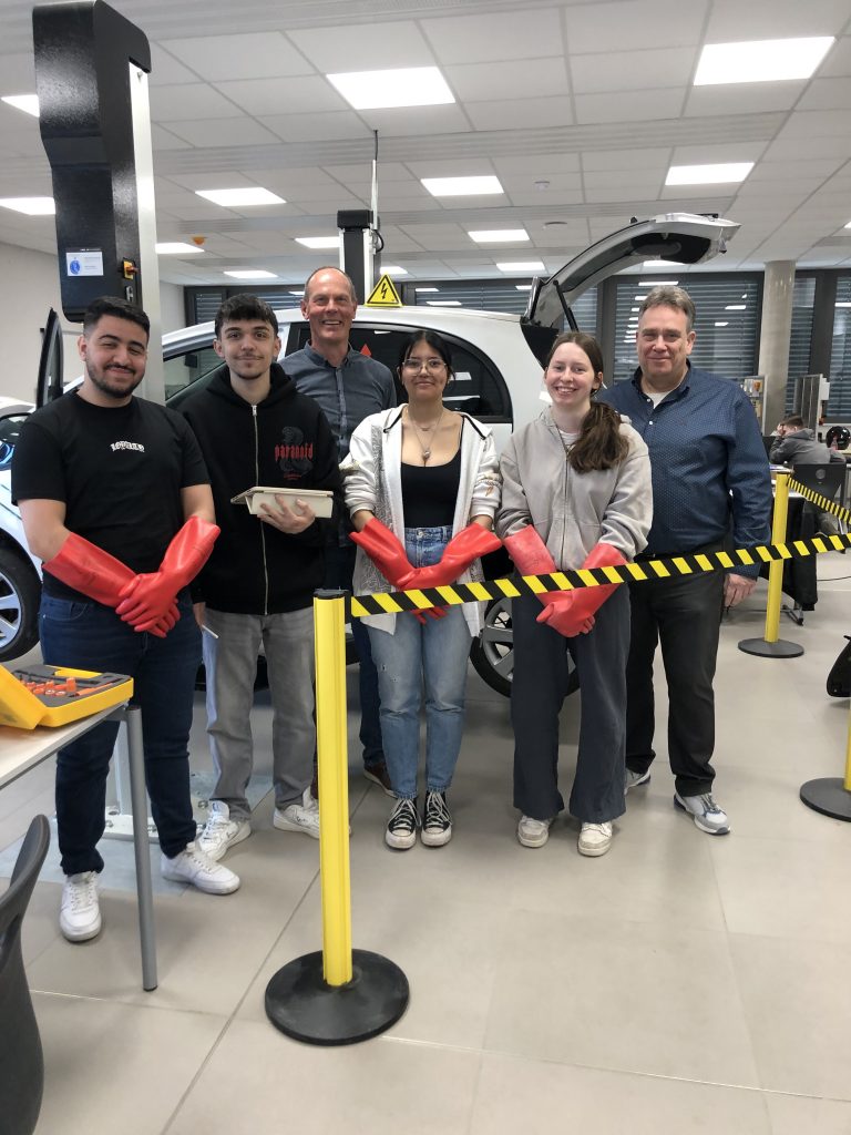 Diese Verbindung konnten die Besucher bei einem anschließenden Rundgang durch die Räume der KFZ- und Veranstaltungstechnik sowie des Werkstattgebäudes selbst erleben. Neben der praxisnahen Ausrichtung des Unterrichts beeindruckte auch die hervorragende Ausstattung der FES die Gäste um Gouverneur Evers und Minister Schwarz.