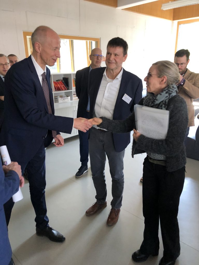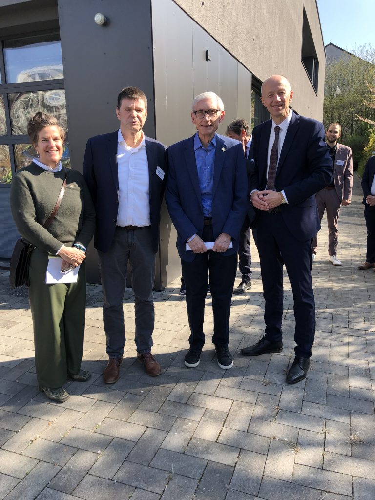 „Welcome Wisconsin!“, hieß es gestern an der Friedrich-Ebert-Schule. Gouverneur Tony Evers war mit seiner Delegation aus Wisconsin sowie dem hessischen Kultusminister Armin Schwarz, einer Delegation aus der Staatskanzlei und Dezernent Olaf Ruff vom Staatlichen Schulamt zu Gast an der Friedrich-Ebert-Schule, um sich über das Erfolgsmodell der dualen Berufsausbildung in Deutschland zu informieren.